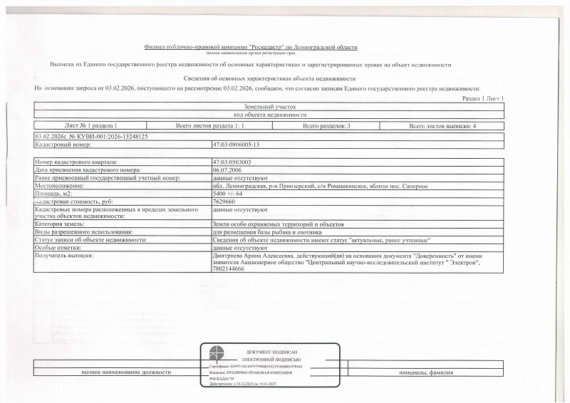 - Кадастровый номер 47:03:0806005:13